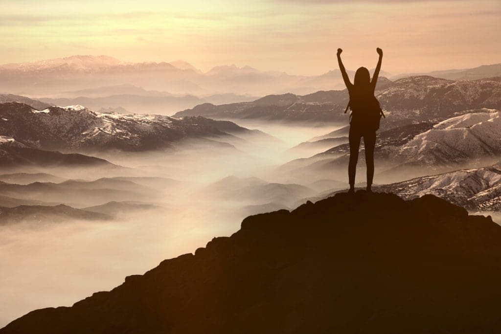 Woman Silhouette at sunset on hill